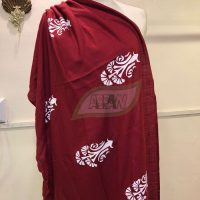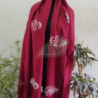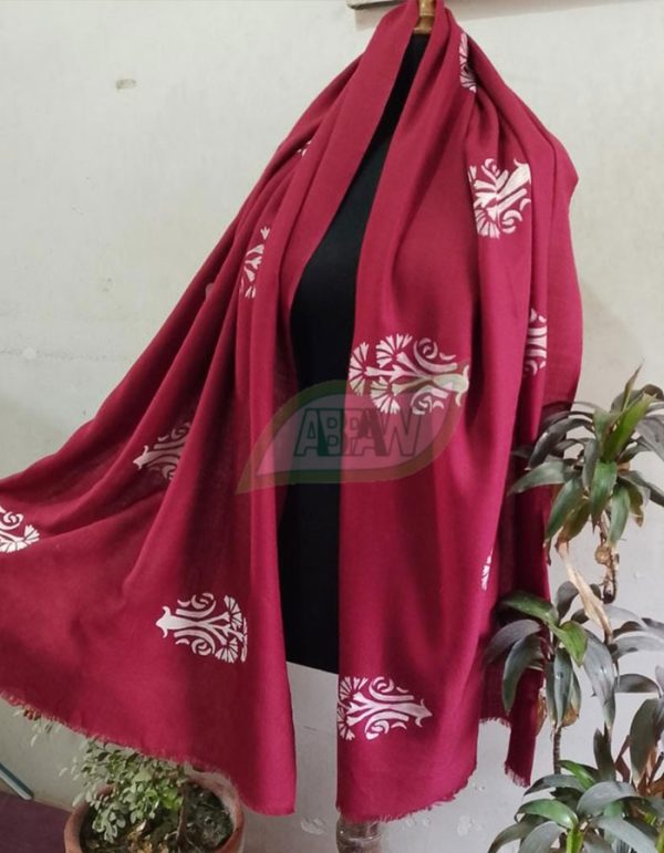 A unique and specially designed stencil is used to paint mandala flowers all over the shawl.