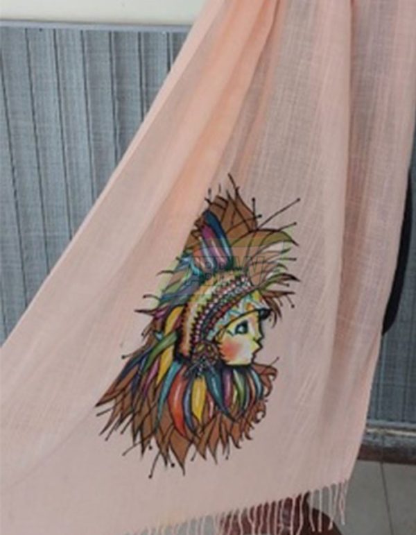 A unique and specially designed stencil is used to paint African Tribal Doll on a single border of the stole.