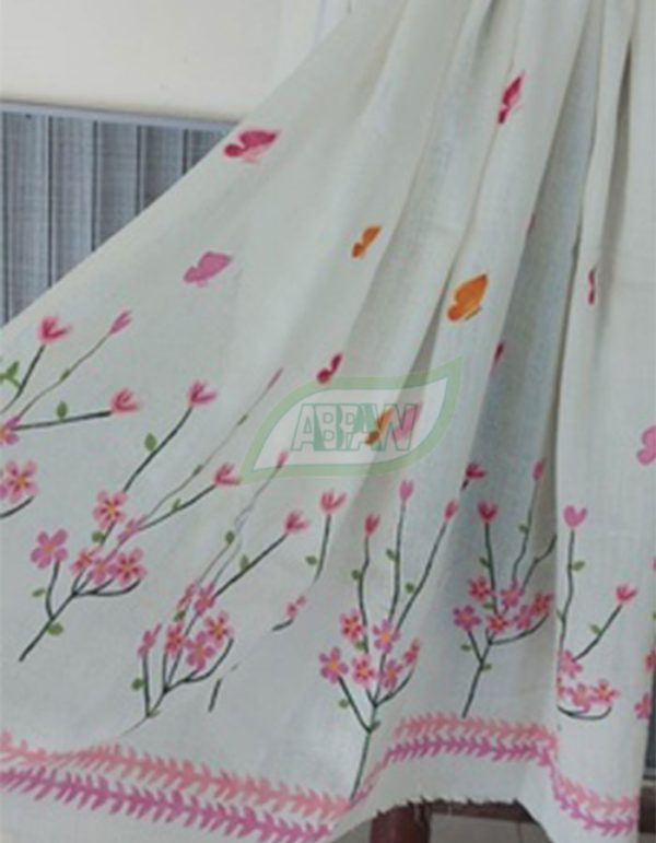 Two unique and specially designed stencils are used to paint Flowers & Butterflies on both the borders of the shawl.
